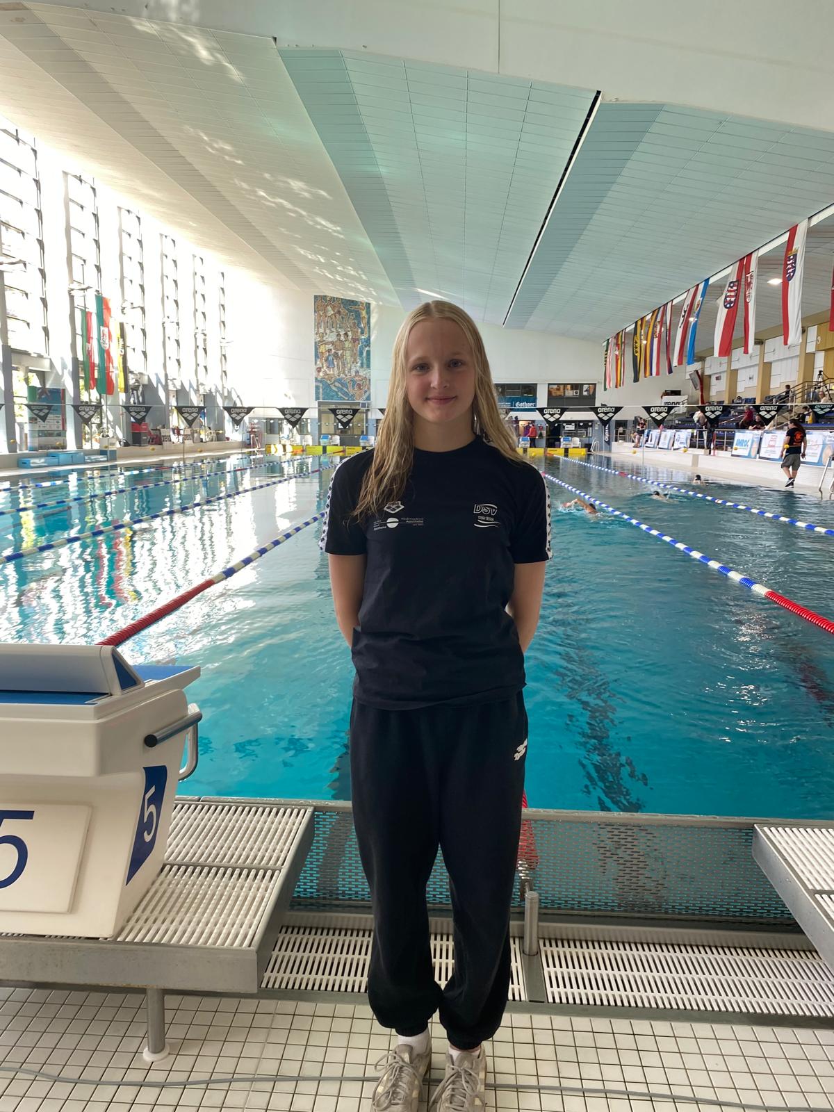 Den ersten Schritt für die Erreichung ihres Zieles hat sie getan. Alle drei Start absolvierte sie in persönlicher Bestzeit, die 50m Freistil (26,89),100m F (0:58,46) und 200m F (2:08,01). Die beiden letzten Ergebnisse bedeuten neue DSV05 Vereinsrekorde für die 50m-Bahn.