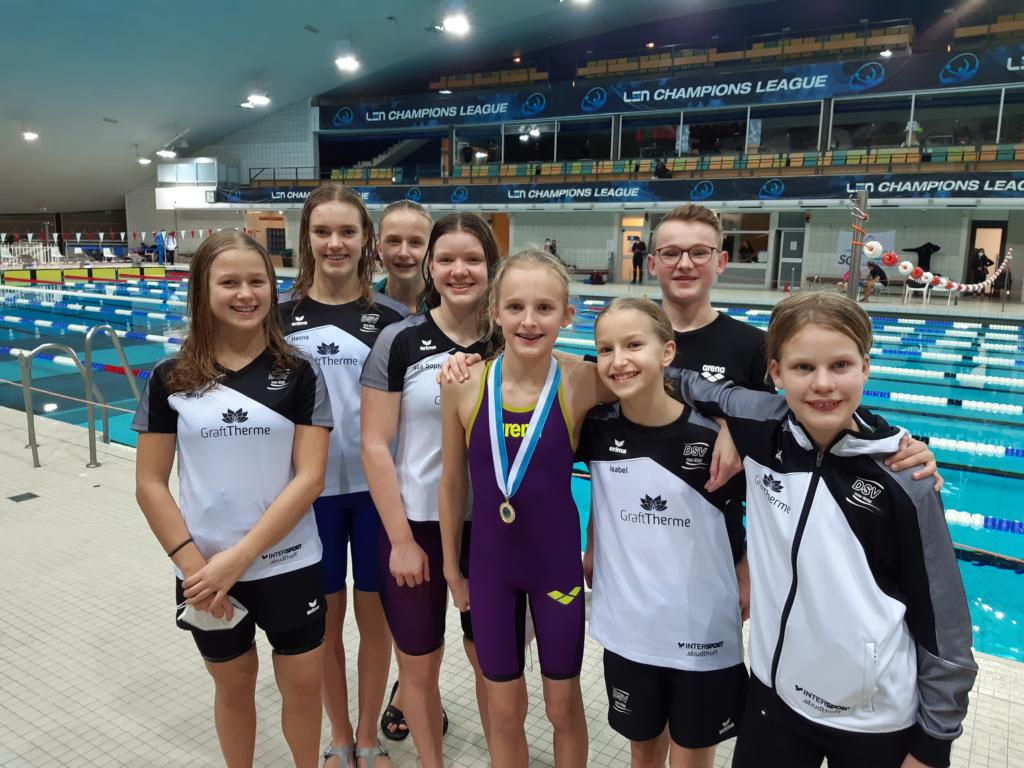 Ebenfalls mit Edelmetall belohnt wurde Hanna Lemmermann. Über 800m Freistil knackte sie die 10-Minuten-Marke und landete in 9:59,70 auf Rang 1 des Jahrgangs 2008 in Niedersachsen (Platz 5 in Norddeutschland). Platz 2 auf der Landesebene gab es dazu noch über 400m Lagen.