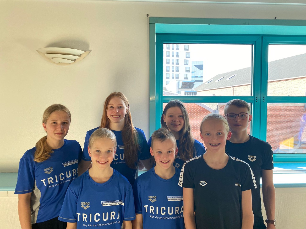 Insgesamt waren sieben Aktive des Delmenhorster Schwimmvereins dabei. Namentlich genannt: Emma Kämpfe, Lea Sophie Baechler, Isabel Karolin Maßberg, Emelie Marie Maßberg, Alina Meyer, Mattis Meyer sowie Niklas Meyer.