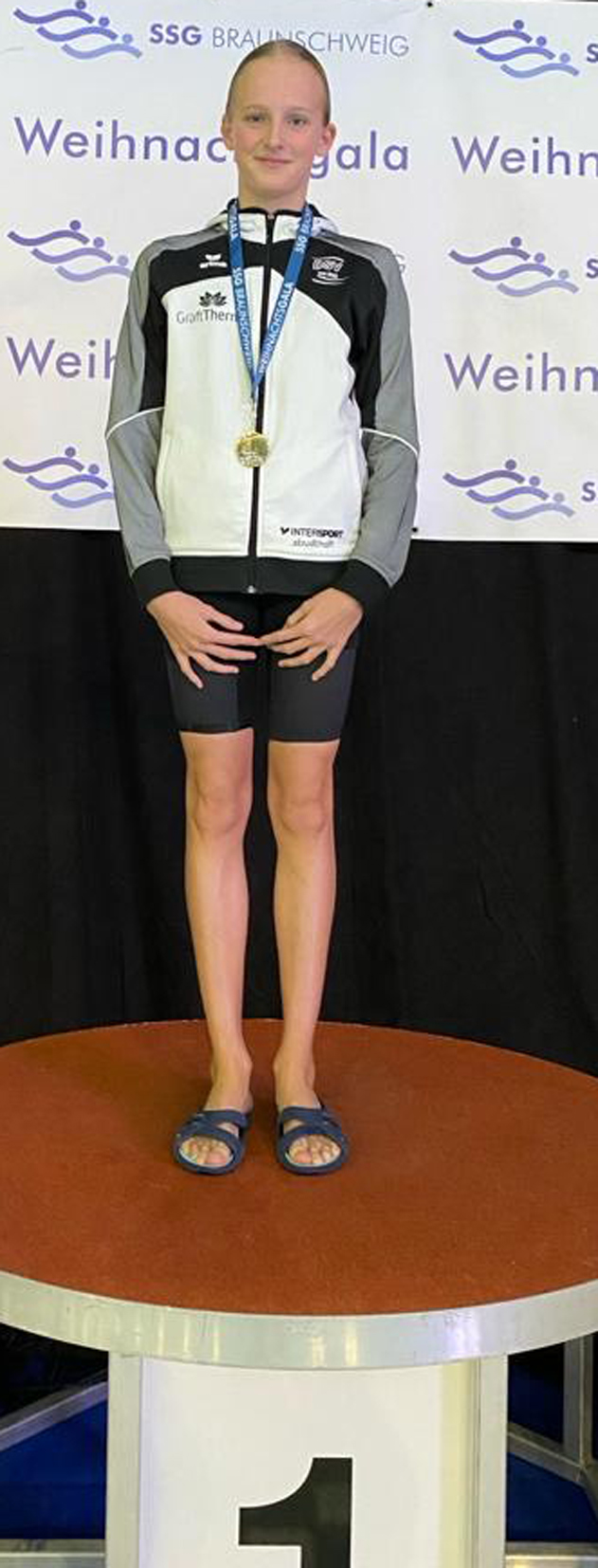 Für Bundeskaderschwimmerin Alina Meyer ging es ebenso am Freitag zu einem Wettkampf. Nur 70 Kilometer vom Internat in Hannover, durfte sich die 2010 geborene Schwimmerin beweisen. 11 Starts konnte Alina am langen Wochenende zurücklegen und sicherte sich acht Bestzeiten. Außerdem war sie Dauergast auf dem Podium ihres Jahrgangs. Sechs goldene und fünf silberne Medaillen fischte das Talent aus dem Sportbad Heidberg. Eine herausragende Saison, die in der kommenden Woche mit dem Start in der 2. Bundesliga vorerst gekrönt werden kann.