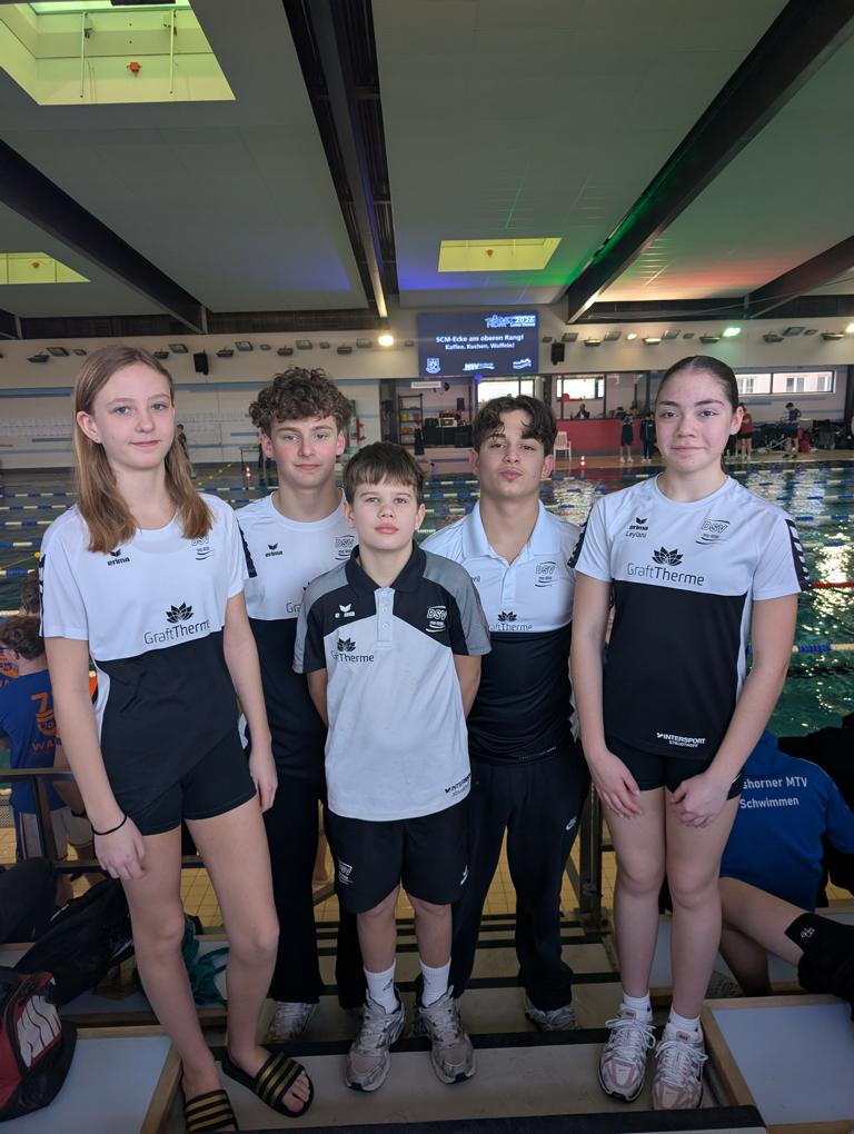 2. Mannschaftsfoto: (hinten) Mattis Meyer & Kieril Rudko, (vorne) Jule Lemmermann, Nicas Harin, Leylani Alexa Penderak