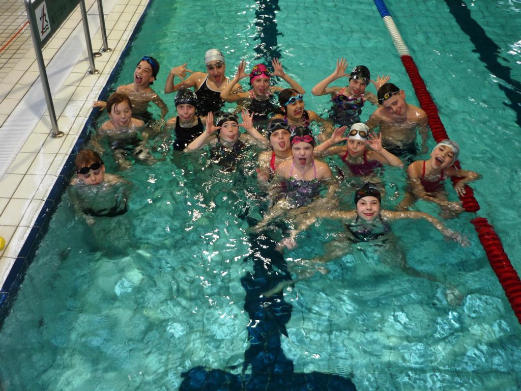![]() Etwas später trafen wir uns zum Schwimmen, vorher füllten wir unsere Flaschen auf (falls nötig). Beim Schwimmen machten wir viel Delphintechnik und auch ein paar Starts, dieses Training fanden wir gut =). Danach gingen wir in den Tagungsraum, wo wir als Überraschung einen Film schauten. ![]() |