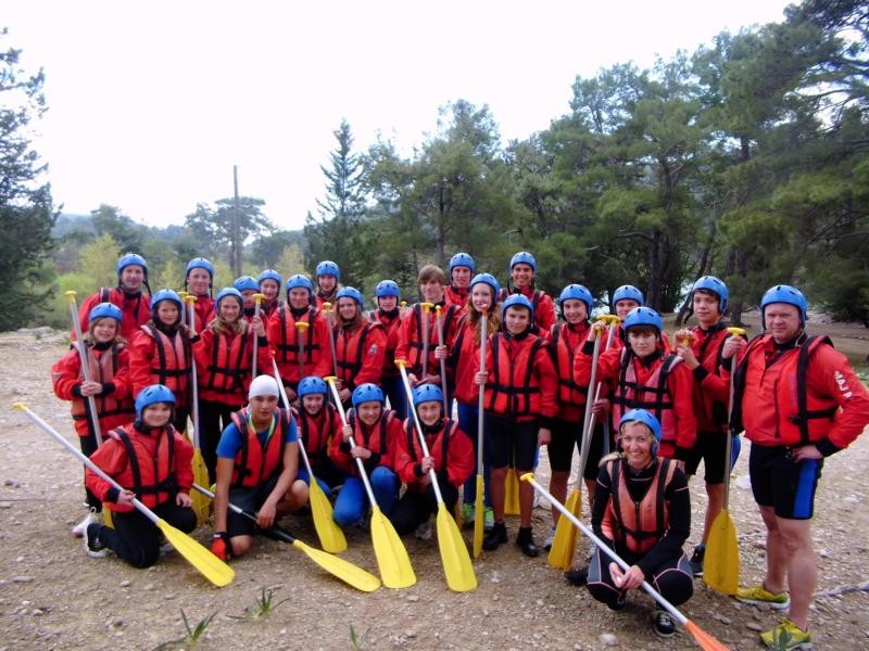 Heute war es endlich soweit: Der trainingsfreie Tag. Alle standen mit einem Lächeln auf und dies verstärkte sich noch durch das sonnige, schöne Wetter. Um 11.00 Uhr knackten wir bereits die 30 Grad Marke. Dies nutzten einige um sich in der Hotelanlage zu entspannen, Andere gingen mit Talke noch einmal in der näheren Umgebung shoppen. Am Mittag ging es dann auch schon mit dem Bus zum «Raften», was wir mit dem SV Nienhagen erleben durften, in die Berge. Der Weg dort hin war ziemlich turbulent, aufgrund der Fahrweise des Busfahrers.
