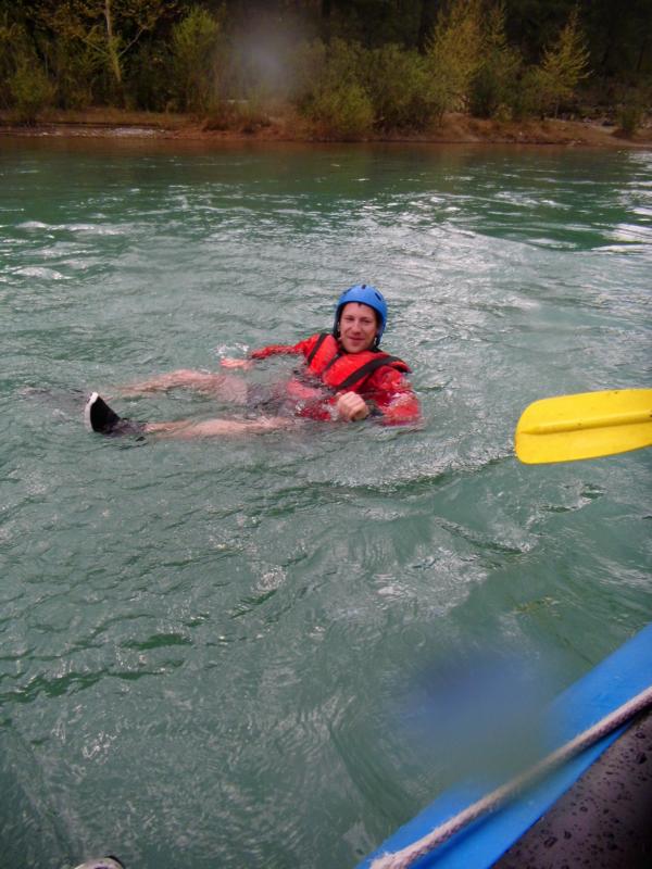 Nach kurzer Zeit schwammen auch schon Alle in dem äußerst kaltem Wasser. Auch Björn durfte das kalte Wasser genießen, was uns Aktive sehr amüsierte. Nach einer guten Stunde endete die aufregende Raftingtour in den Bergen. Mit großem Hunger stürzten sich alle aufs Buffet und genossen den Abend.