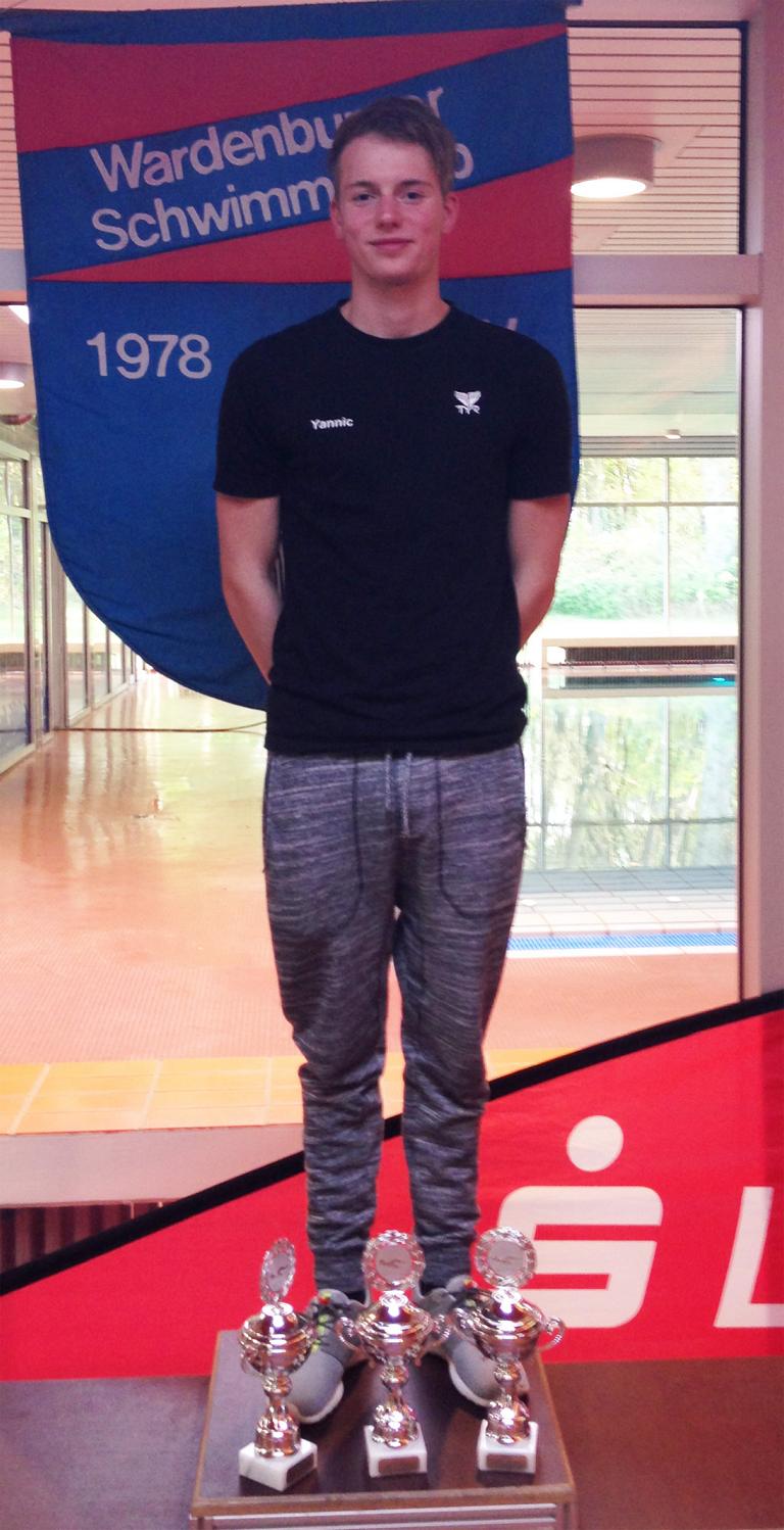 Das mit Abstand beste Team beim 19. Ostermeeting in Wardenburg stellte das 41 köpfige Team des Delmenhorster Schwimmvereines von 1905 e.V.. Allen voran Marc Hoffstedt (Jahrgang 1997) und Yannic Ziegler (93) waren am Osterwochenende nicht zu schlagen. Marc Hoffstedt siegte bei allen seiner 13 Starts und wurde in der Allrounder Wertung zweiter hinter seinem Vereinskollegen Yannic Ziegler,