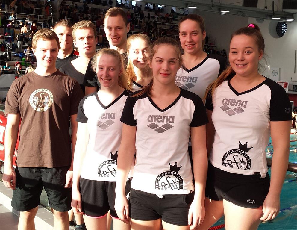 Besondere Leistungen zeigten die Delmenhorster Schwimmerinnen und Schwimmer bei der Deutschen Kurzbahnmeisterschaft im Schwimmen. Trainer Björn Lippel sprach hinterher von einem „sehr erfolgreichen Wochenende“ seiner Schützlinge. Bei sieben Starts wurden schon wieder fünf Stadtrekorde verbessert. Als Einzelschwimmer trat Charleen Kölling in der Damenwertung über 1500 Meter Freistil an. Mit einer Zeit von 17:52,91 Minuten schlug die 13-jährige als 39. in der bundesweiten offenen Wertung an. Mit dieser Zeit trug sie sich auf der sechsten Strecke in die Liste der Delmenhorster Stadtrekorde ein. Sie verbesserte den alten Stadtrekord um rund 23 Sekunden. Dass sie an dem Wettkampf schnell unterwegs war, bewies sie schon darin, dass sie bei der 800 Meter Zwischenzeit schneller war als ihr Stadtrekord auf dieser Gesamtstrecke. Felix Ahrens (Jg. 90) ging über 50 Meter Schmetterling und 100 Meter Rücken an den Start. Auf der Schmetterligstrecke wurde er 58. in einer Zeit von 0:25,89 Minuten damit blieb knapp hinter seiner eigenen Bestzeit. Auf der Rückenstrecke schwamm er persönliche Bestzeit und kam in 0:58,87 auf den 39. Rang.