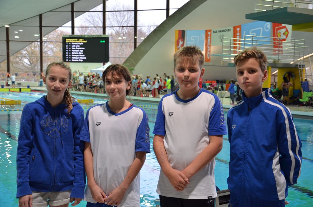 Sieben Aktive des Delmenhorster Schwimmverein 1905 traten am Wochenende bei den Landeskurzbahnjahrgangsmeisterschaften in Hannover an. Startberechtigt waren Schwimmerinnen der Jahrgänge 2003 bis 2005 sowie Schwimmer der Jahrgänge 2002 bis 2005. Jüngster Delmenhorster Schwimmer war Ilja Dzhumelja (Jahrgang 2005), er startete am ersten Veranstaltungstag auf der 50 Meter Rücken-Disziplin. Diese beendete er in 0:48,67 Minuten auf dem 23. Platz. Anja Biermann (04) qualifizierte sich über 200 Meter Rücken und konnte in 3:07,75 Minuten ihre alte Bestzeit deutlich verbessern, damit kam sie auf Rang 19. Ilja Kari (04) schwamm auf den Bruststrecken über 50, 100 und 200 Meter und kam auf den Plätzen 10, 17 und 21 ins Ziel. Nikolai Legler (04) sprang sechsmal ins Wettkampfbecken, dabei kam er auf drei neue Bestzeiten, am erfolgreichsten war er mit dem sechsten Platz in 5:42,82 über 400 Meter Freistil. Alexa Blum (04) qualifizierte sich in acht Disziplinen für die Landesmeisterschaft, sie schwamm durchweg gute Zeiten und schlug unter anderem als sechste über 400 Meter Lagen in 6:09,88 Minuten an. Mara Anders (03) war durch eine Handverletzung gehandicapt, vorrangig war sie froh überhaupt an den Start zu gehen, konnte sich dadurch leider nicht wie erwartet verbessern, lediglich im letzten Wettkampf über 50 Meter Schmetterling konnte hat sie eine Bestzeit mit 0:34,27 Minuten aufstellen, die dann noch zum Einzug ins Finale reichte, in dem sie dann in 0:34,04 Minuten am Ende siebte wurde. Rune-Matthis Bosse (02) schwamm über 50 Meter Brust zu neuer Bestzeit und sicherte sich Rang 19.