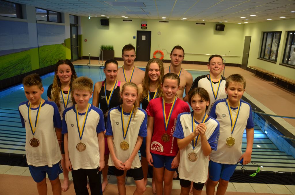 Zu Beginn der Veranstaltung standen die Wettkämpfe zur Ermittlung der diesjährigen Vereinsmeister an. Als erstes starteten die Damen der Jahrgänge 2003 und jünger über 100 Meter Lagen. Diese Strecke ist in vier gleiche Strecken Schmetterling, Rücken, Brust und Kraul aufgeteilt. Mara Anders (Jahrgang 2003) gewann diese Entscheidung in 1:19,46 Minuten vor Alexa Blum (04) in 1:21,54 Minuten und Ronja Kozak (04) in 1:26,61 Minuten. Bei den Jungen der gleichen Jahrgangswertung gewann Nikolai Legler (04) in 1:26,74 Minuten vor Martin Leis (03) in 1:27,26 Minuten und Ilja Kari (04) in 1:31,70 Minuten.