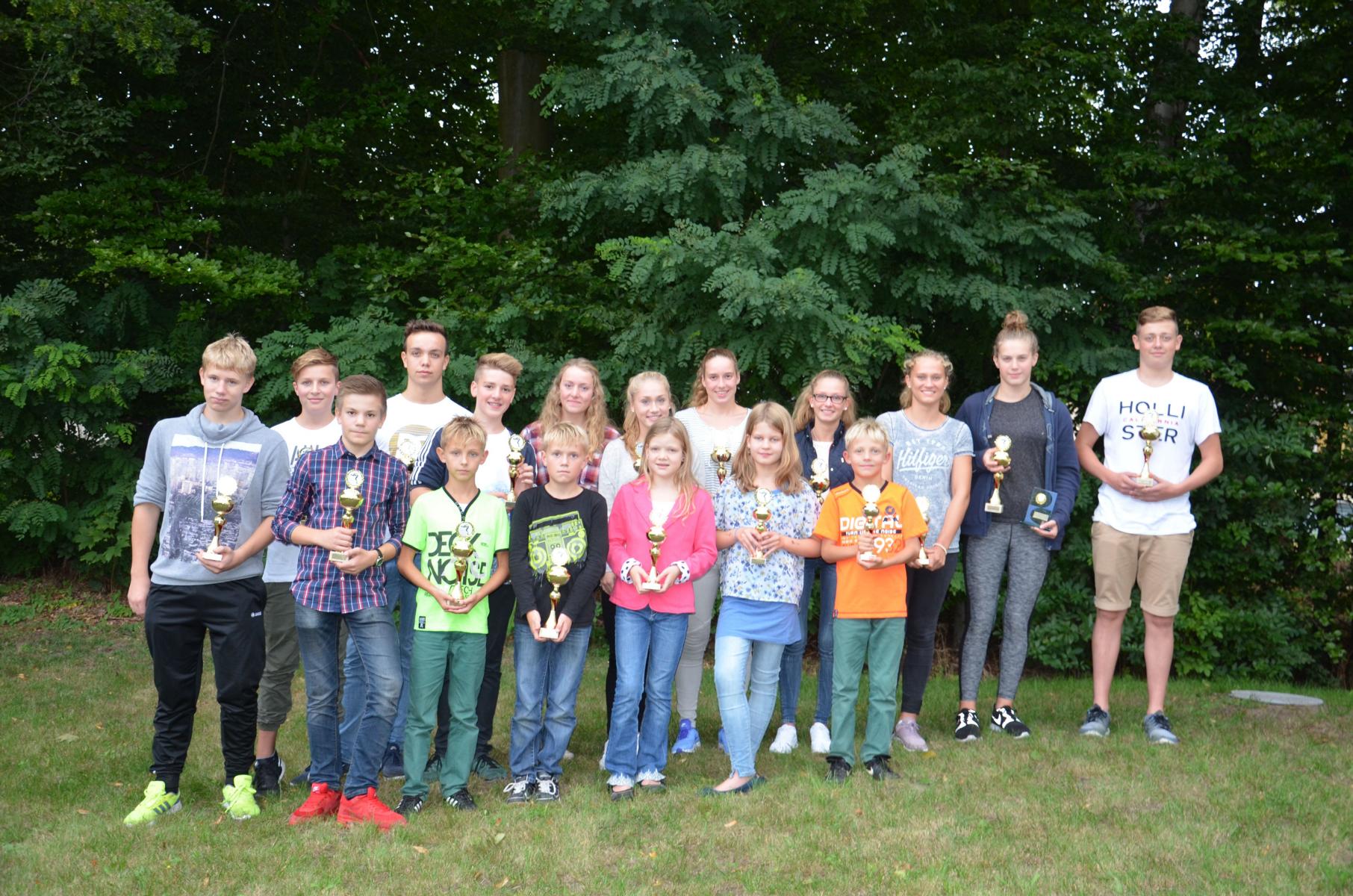 Erstmals ehrt der Schwimmverein nach erfolgreicher Fusion die Delmenhorster Schwimmerinnen und Schwimmer gemeinsam. Unterteilt in vier Altersklassen wurden aus 50 Veranstaltungen der abgelaufenen Saison bei einem familiären Sommerfest im Vereinsheim gewertet, die Besten drei wurden jeweils mit Pokalen geehrt. Wolfgang Kroker als sportlicher Leiter hat die Ergebnisse aus 4187 Einzelstarts zusammengefügt. Insgesamt kamen 129 Aktive Schwimmerinnen und Schwimmer in die Wertung. Die Punktwertung setzt sich aus den besten Wertungen von drei verschiedenen Schwimmstrecken aus mindestens zwei verschiedenen Schwimmlagen zusammen, wobei der aktuelle Weltrekord der Strecke 1000 Punkte bedeutet und die Punkte laut FINA Liste heruntergerechnet werden. Die Pokale wurden vom 1. Vorsitzenden Holger Hoffstedt überreicht, der zuvor allen Trainern und Helfern seinen Dank ausgesprochen hat.