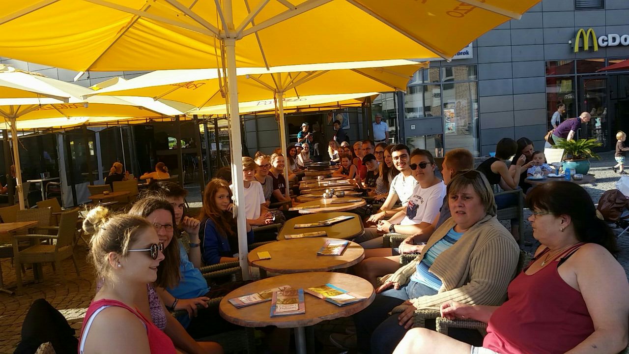 Am 20.06.17 trafen sich nach der letzten Schwimmeinheit für die Anfängergruppen unsere Helfer des Kinderschwimmens, um ein gemeinsames Eis zu genießen. Leider konnten nicht alle Helfer teilnehmen, aber mit immerhin 35 Helfern im Alter von acht (Helfershelfer) bis über 50 Jahre bis ging es in Richtung Marktplatz zur Gelateria Palazzo.