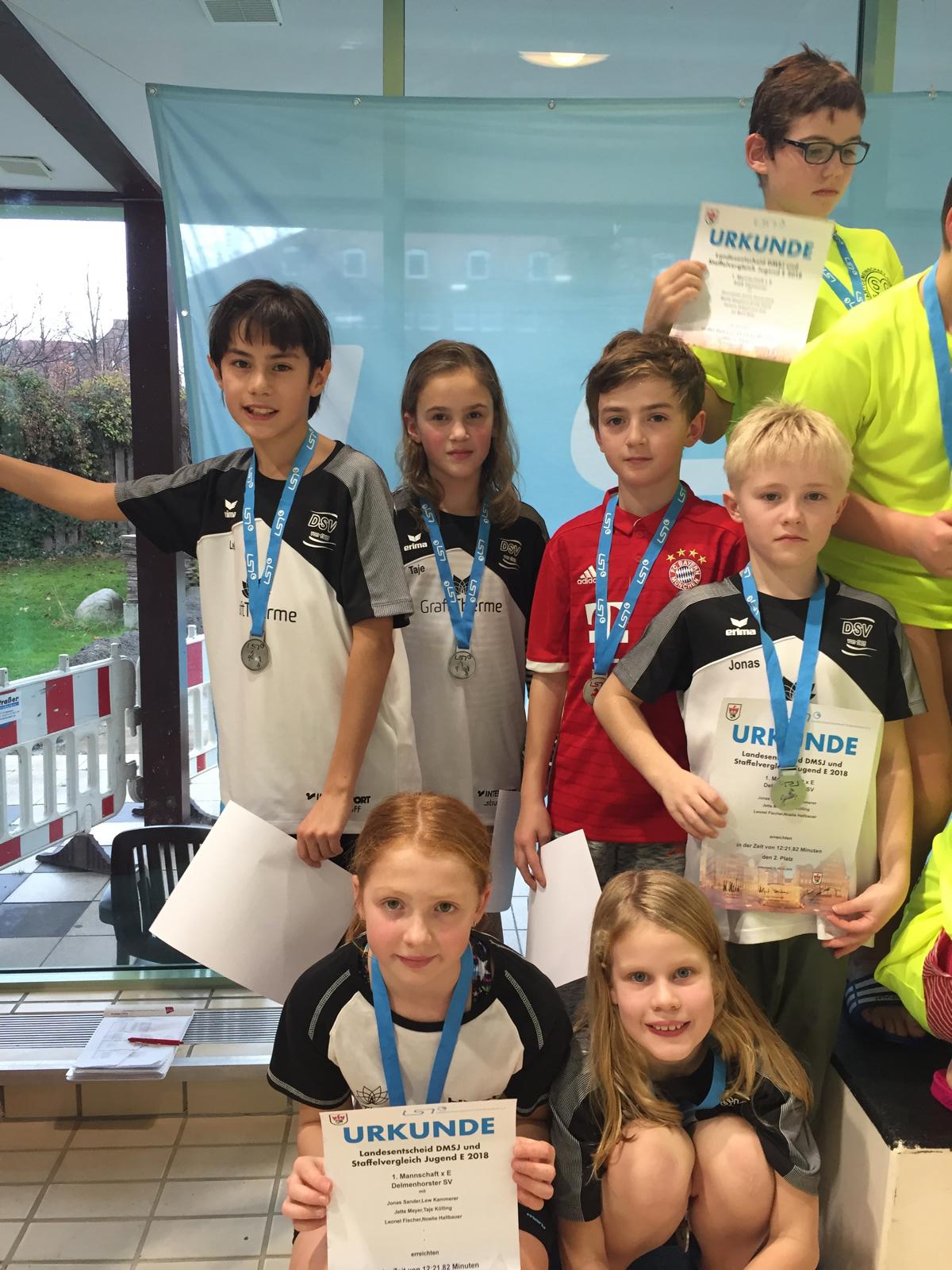 Der Landesentscheid der Deutschen Mannschaftsmeisterschaft der Jugend (DMSJ) und der Jugend E fand am vergangenen Wochenende im Wasserparadies in Hildesheim statt. Hierfür haben sich im Vorfeld fünf Delmenhorster Mannschaften der Jahrgänge 2001 bis 2009 mit 25 Aktiven qualifiziert. Sie gehören in ihren Altersklassen zu den besten 8 Teams in Niedersachsen.