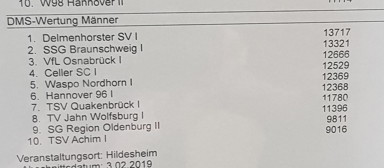 Nachdem die Endergebnisse des DMS feststehen, kann ich Eurer Männermannschaft ganz herzlich zum Aufstieg in die 2. Bundesliga Nord gratulieren.