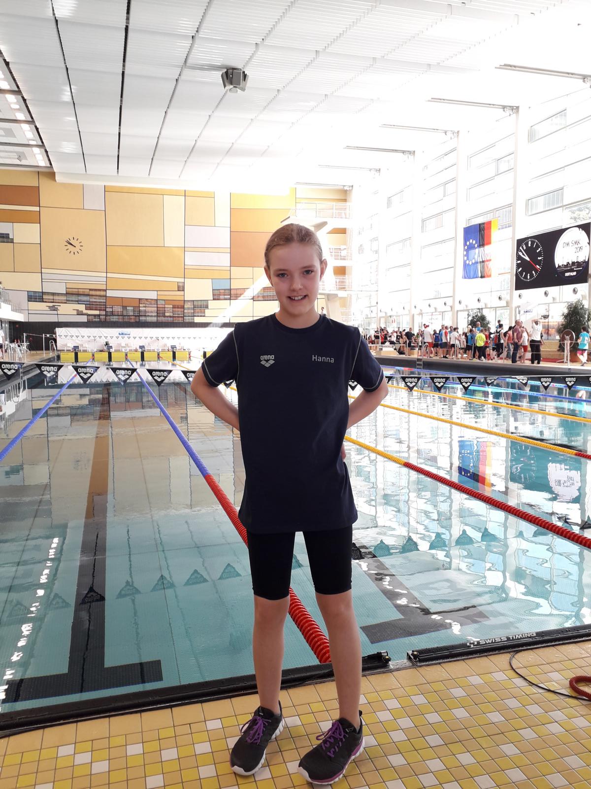 Am Freitagnachmittag standen die von ihr nicht so geliebten 400 m Freistil auf dem Programm, die Hanna trotz großer Aufregung in neuer Bestzeit von 5:41,57 Minuten beendete. Am Samstag wurden die drei Strecken in der gewählten Lage absolviert. Mit Hannas 46,00 Sekunden über 50 m Rückenbeine belegte sie sowohl über diese Distanz als auch im Zwischenstand in der Wertung Rücken weiblich den Platz 13. Auf den beiden weiteren Rückenstrecken lief es erneut gut und Hanna belegte mit neuen Bestzeiten von 1:21,12 Minuten und 2:52,92 Minuten jeweils den Platz 18. Am Ende des zweiten Tages lag Hanna auf Platz 14 ihrer Wertung. Dieser Platz bedeutete für sie einen Startplatz im zweitschnellsten Lauf über die 200 m Lagen am Sonntag. Hier konnte Hanna leider keine neue Bestzeit erzielen, sondern belegte in 2:57,93 Minuten wiederum Platz 18. Trotzdem konnte sie ihre Platzierung verteidigen und belegte letztendlich mit 2024 Punkten Rang 14.
