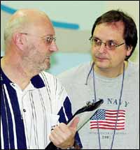 | SCD-Trainer Bernd Herrschaft (li.) und DSV-Chef Jörg Behrens im Gespräch. Annäherungen? Foto: Tobis |