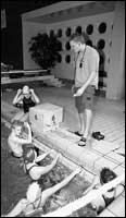 | Die Schwimmer des DSV 05 kamen recht erfolgreich beim Saison-Debüt in Bremen aus dem Wasser. Ein Verdienst des Trainers Markus Erth (am Beckenrand mit der Leistungsgruppe 1). Foto: Bayer-Thiemig |