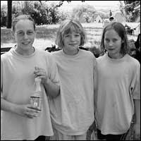| Nach gezielter Vorbereitung glänzten die Delmenhorster Schwimmerinen Taje Gildeshaus und Carina Czienskowski, die sich hier mit ihrer Vereinskameradin Alena Sikken (von links) dem Fotografen stellen, bei den Landesjahrgangsmeisterschaften in Schöningen mit guten Leistungen. Foto: privat |