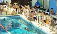 | Richtig eng war es gestern am Beckenrand im Delfina. Jeder wollte beim Kampf um die Medaillen dabei sein. |