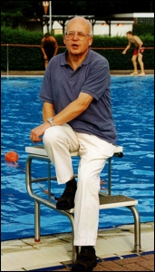 Doch so sehr der Wassernarr auch den Sport und seine Funktionen mag, seine Familie ist ihm das liebste. Seine Frau Vera hatte er 1955 bei einer Kohlfahrt kennengelernt. "Es war bei mir Liebe auf den ersten Blick", lächelt er. Beide hatten bei der Nordwolle gearbeitet, er als Industriekaufmann, sie zunächst als Spinnerin, später als Sekretärin des Spinnereileiters. 1958 wurde geheiratet, haben drei Töchter und neun Enkel. Alle haben sie irgendwie etwas mit dem Schwimmen zu tun. Die älteste Tochter, die in der Nähe von Paris verheiratet ist, startet dort für die Schwimmsenioren. Dieses Jahr will sie erstmals mit einer kleinen französischen Mannschaft beim internationalen Wettkampf in Burg Gretesch/Osnabrück schwimmen. Ziel von Ernst Walter de Haas ist der gleiche Wettkampf. Die beiden anderen Töchter wohnen mit ihren Familien in Delmenhorst, gehören alle dem Schwimmverein an. "Einige meiner Enkel sind schon schneller als ich heute."