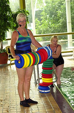 Eines ist für lizenzierte Übungsleiterin des DSV ("Sport in der Prävention") klar: "Aqua Fitness ist kein lahmes Damenballett, das ist ein richtiger Sport." Die 56-Jährige hat diesen Sport vor vier Jahren für sich entdeckt, sich seitdem stetig fortgebildet und gibt seit zwei Jahren regelmäßig Kurse, "um Gesundheit in Bewegung zu fördern." Viele Teilnehmer sind inzwischen Stammgäste, aber es kommen auch immer wieder neue Gesichter in die schnell ausgebuchten Stunden. Gemeinschaft und Spaß sind dabei wichtig. Es darf gelacht werden und ein gemeinsames Abendessen am Kursende gehört auch dazu. Doch dabei wird der Fitness-aspekt nie vergessen. Wenn der Kurs pausiert, geht man gemeinsam zum "Walking".