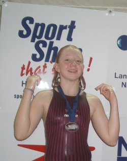 Sarina Manott (92) holte ebenfalls Edelmetall in allen Farben und stellte drei neue Stadtrekorde auf: Landesjahrgangsmeisterin auf der Kurzbahn wurde sie über 50m und 100m Rücken in Stadtrekordzeit von 0:32,77 min bzw. 1:11,16 min, die Silbermedaille erhielt sie für ihre Leistung über 200m Rücken in 2:34,21 min - diese Zeit bedeutet ebenfalls Stadtrekord. Über 100m Freistil (1:05,78 min) schwamm sie schließlich auf den Bronzerang, Platz vier und Platz fünf über 50m Delfin und 50m Freistil machten ihr gutes Gesamtergebnis komplett.