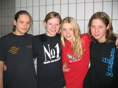 In der weiblichen D-Jugend (Jg. 94/95) konnten Larissa Engelbart (95), Mareike Schumacher (95), Tatjana Barke (94), Jennifer Wichmann (94) und Annika Kluthe (95) ebenfalls mit nur 54 Sekunden Abstand zur führenden SG Weser-Ems am Ende Silbermedaillen in Empfang nehmen. Die 4x100m-Bruststaffel gewannen die DSV 05-Mädchen sogar, Larissa überragte hier mit ihrer Zeit über 100m Brust in 1:36,24 min. Dies ist bundesweit in ihrem Jahrgang momentan der Spitzenplatz.